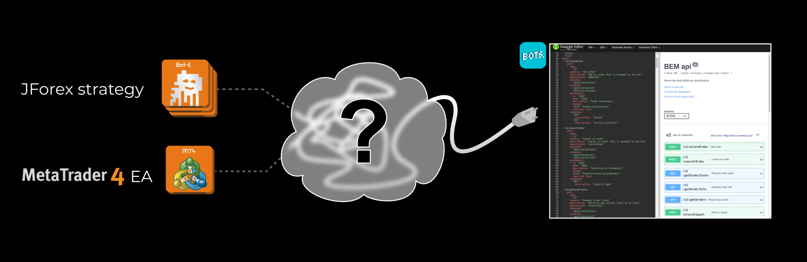 The goal was to connect standard JForex strategies and MT4 EAs to bots.io without programming. By using TradeManager our customer now runs a JForex and a Metatrader platform. All trades are executed to bots.io.